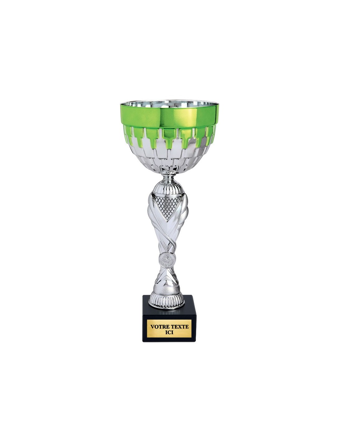 Découvrez notre Coupe argent/vert(e), conçu spécialement pour célébrer les performances et honorer les champions. Idéale pour les compétitions et les remises de prix, cette coupe saura sublimer chaque podium. Parfait pour compétition, ce modèle allie élégance et robustesse. Avec une hauteur de 32.0 cm, il se démarque par son allure imposante. **Personnalisation disponible** : Marquage disponible. Commandez dès maintenant chez **Trophée Sportif** et offrez une récompense à la hauteur des performances !