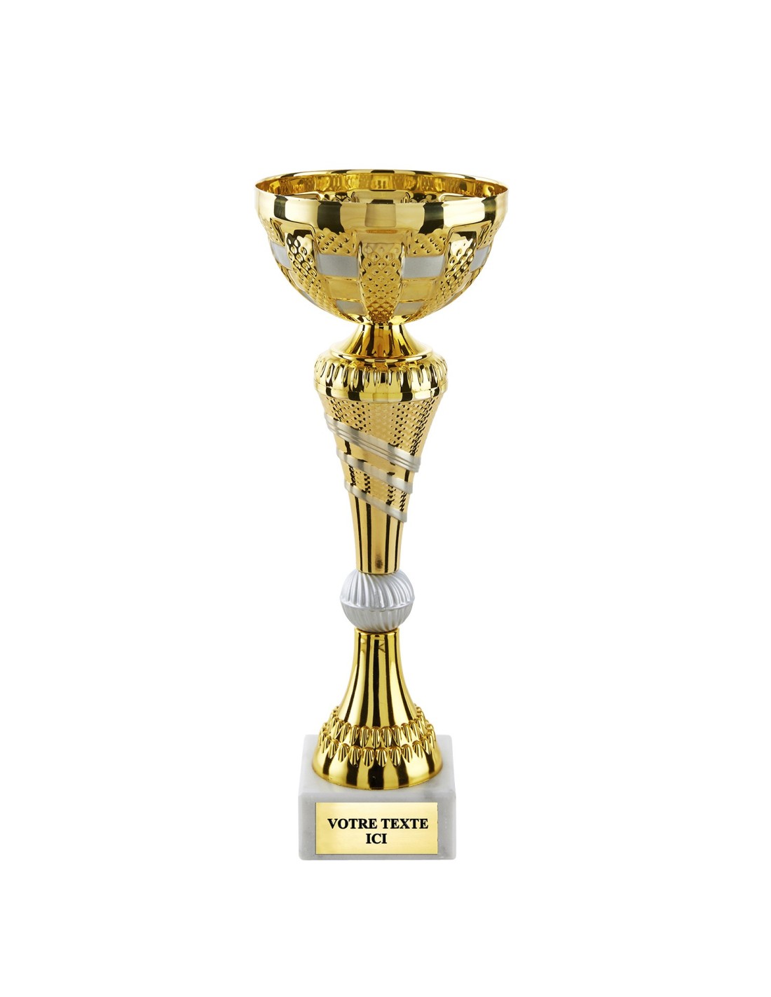 Vous cherchez une coupe au rendu soigné pour vos compétitions, tournois et remises de prix ? Découvrez Coupe classique or/argent mat (réf. CP5420C) chez Trophée Sportif.