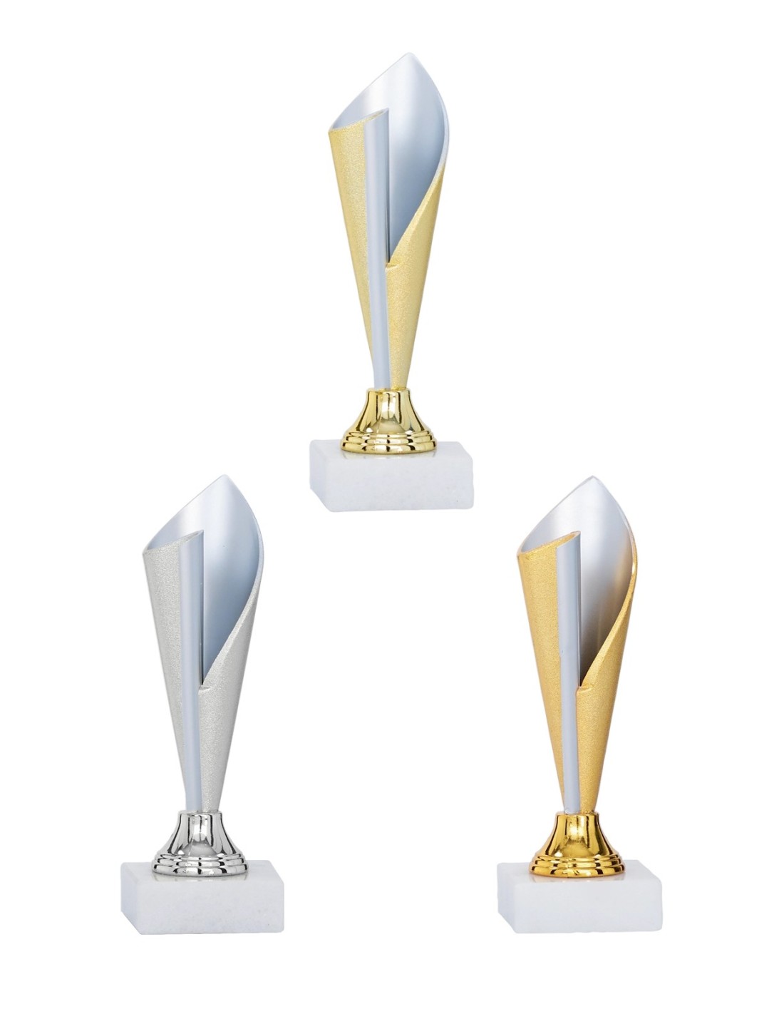 COUPE - Hauteur : 17 cm - Coupe : Matière synthétique - Base en marbre - Finition : Or-Argent / Argent Mat - Bronze / Argent Mat