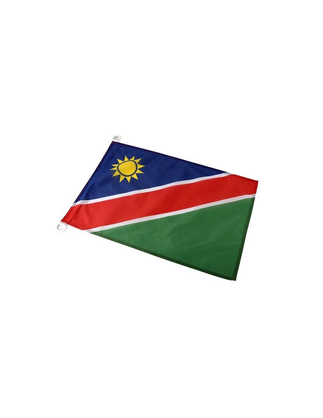 Impression en numérique sur maille 115g. Hauteur de mât 6 m. Ourlet 2 aiguilles sur le tour. Sangle de renfort + anneaux PVC anti UV haut et bas. Dimension : 120x180 cm