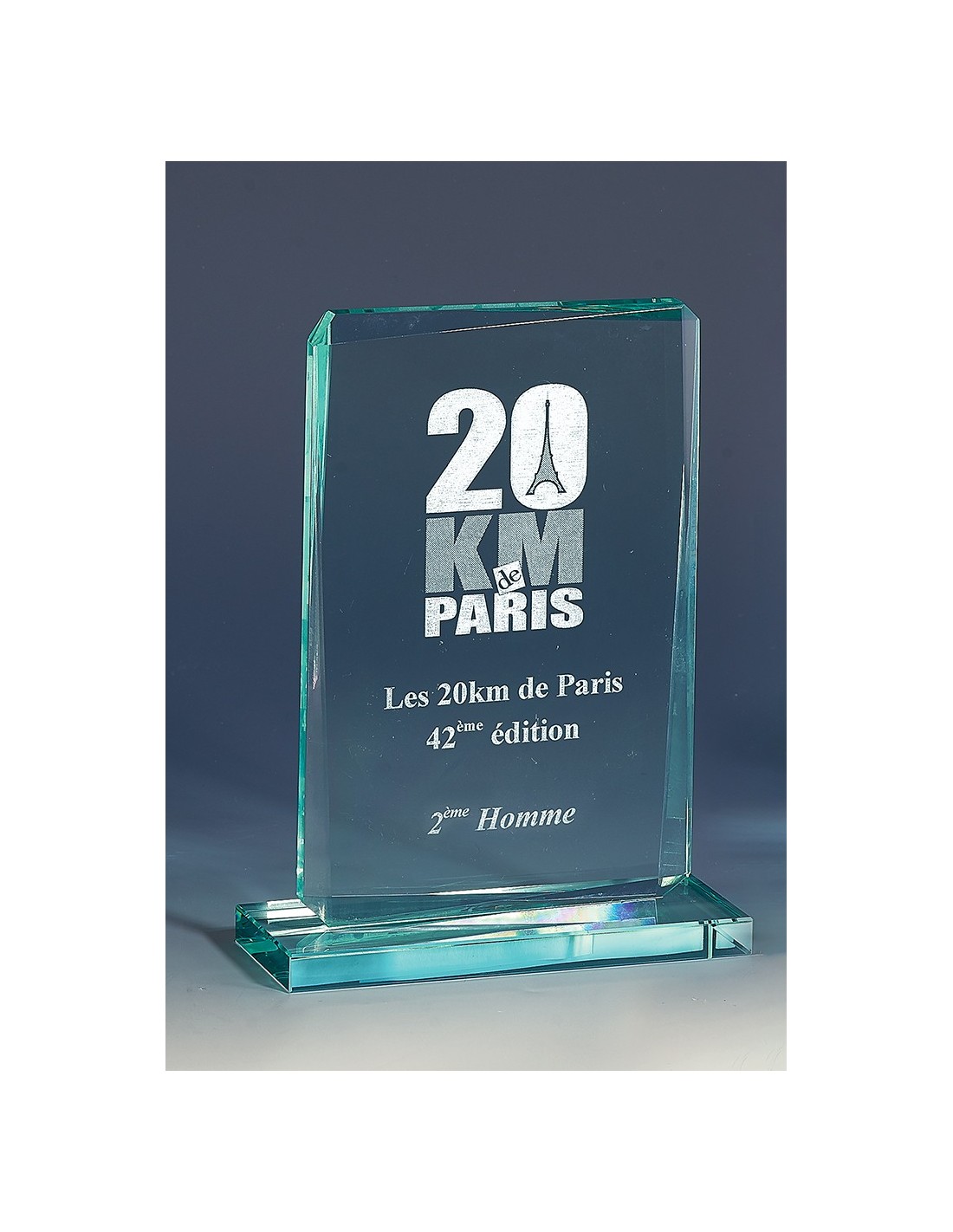 Trophée Verre Personnalisé - Hauteur : 22 cm - Matière du trophée : Verre - Finition : verre transparent - Epaisseur : 12 mm - Personnalisation : Choisir votre activité - Grand choix de sports et d'activités disponibles - Gravure laser : logo sportif standard et texte - Possibilité d'ajouter votre logo en supplément.